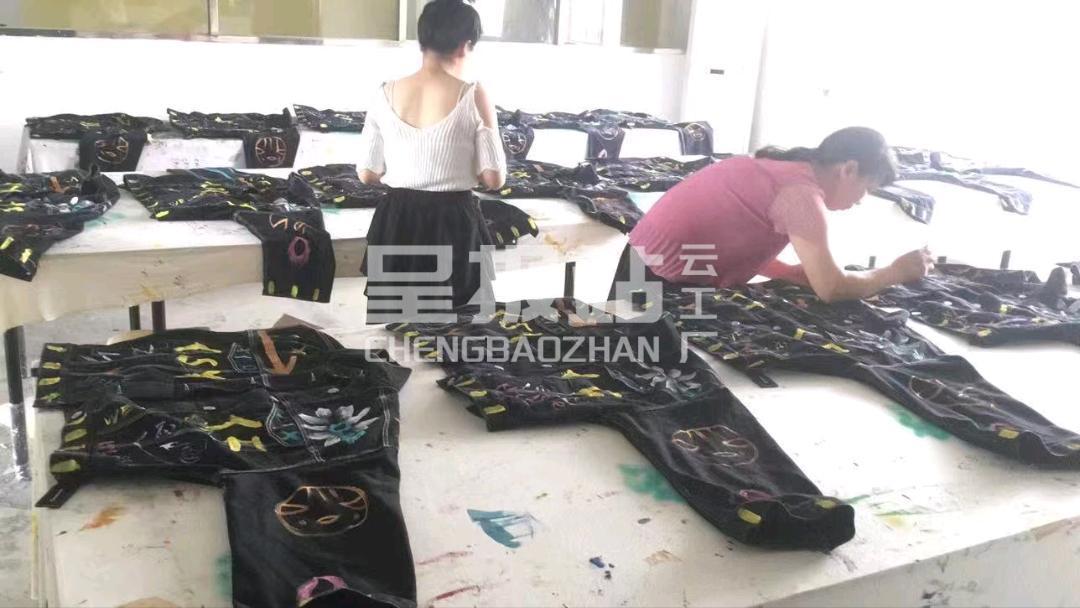 本厂经营:裁片或成衣:服装手绘、彩绘涂鸦、热冷烫画、手工喷染做旧、扎染渐变、甩点刷丝、烫金烫银、修色、等工艺