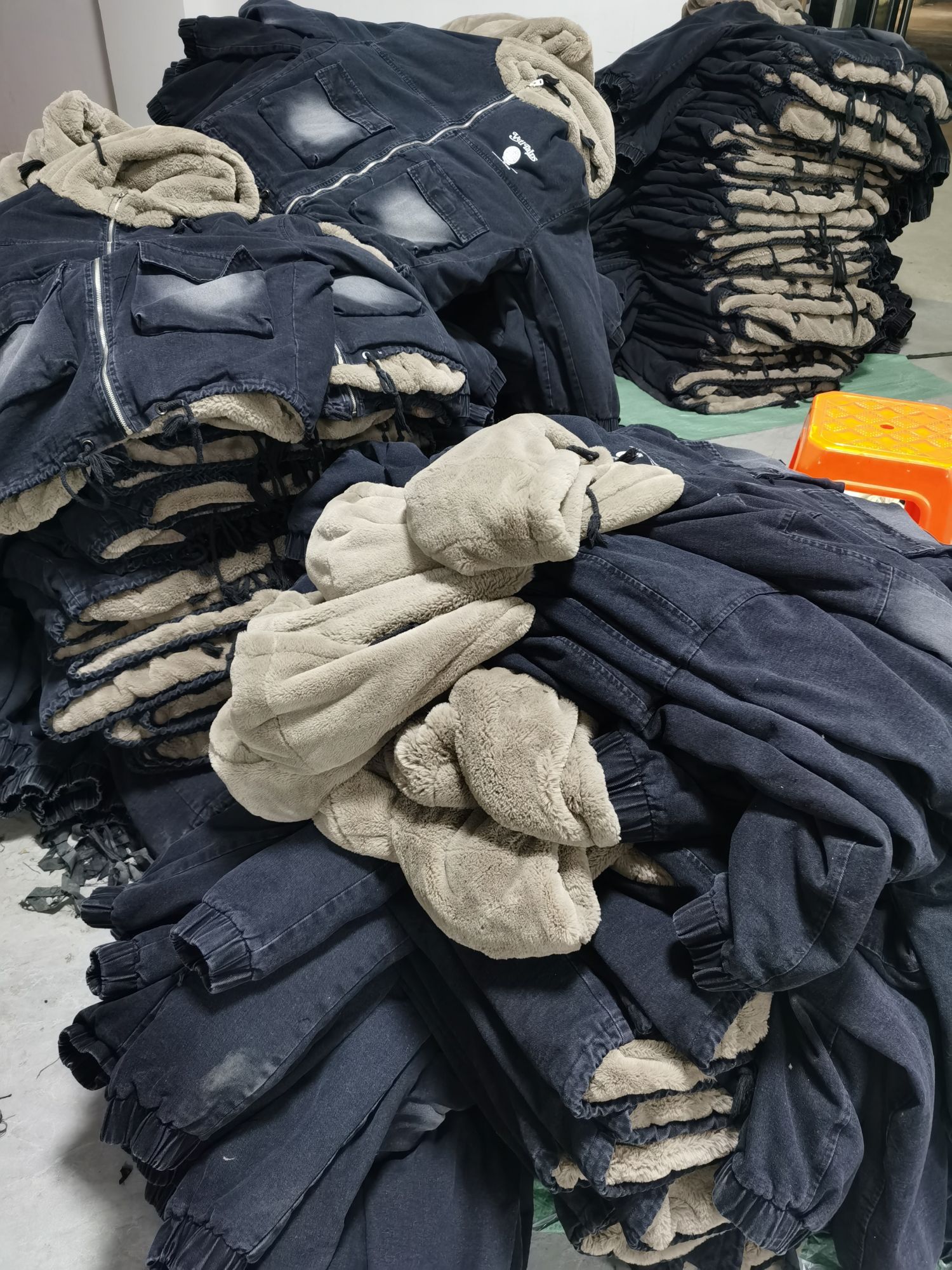 本厂一楼是800平是办工,开发,尾段,裁床。二楼800平是车间,专业针织,比如T恤,卫衣,卫裤。三楼800平是车间专业梭织,比如牛仔,雪纺,棉服,羽绒服。