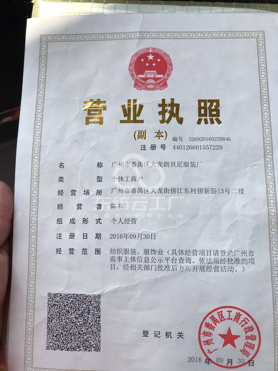 广州市番禺区大龙朗贝尼服装厂