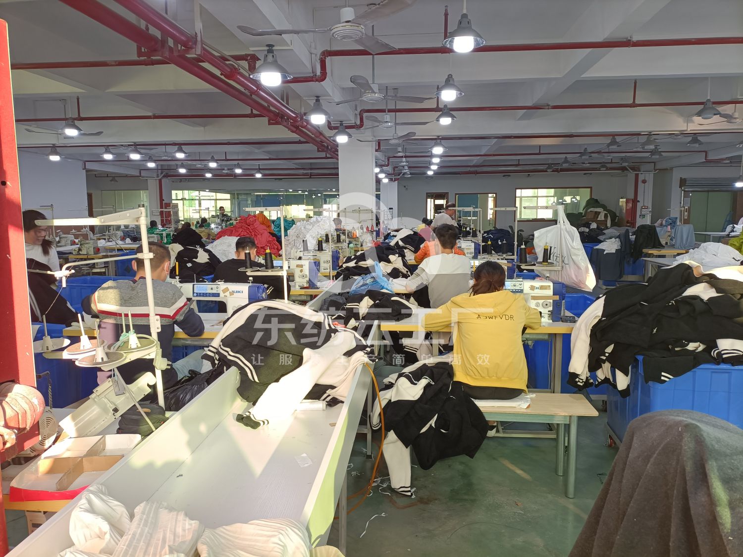 本公司有针织、梭织、牛仔独立车间,从打样、裁到包设备齐全,主要生产针织T恤,pOLo衫,卫衣卫裤,牛仔针织拼接,牛仔梭织拼接,牛仔裤,牛仔衣,以及梭织上衣,裤、裙子等产品
