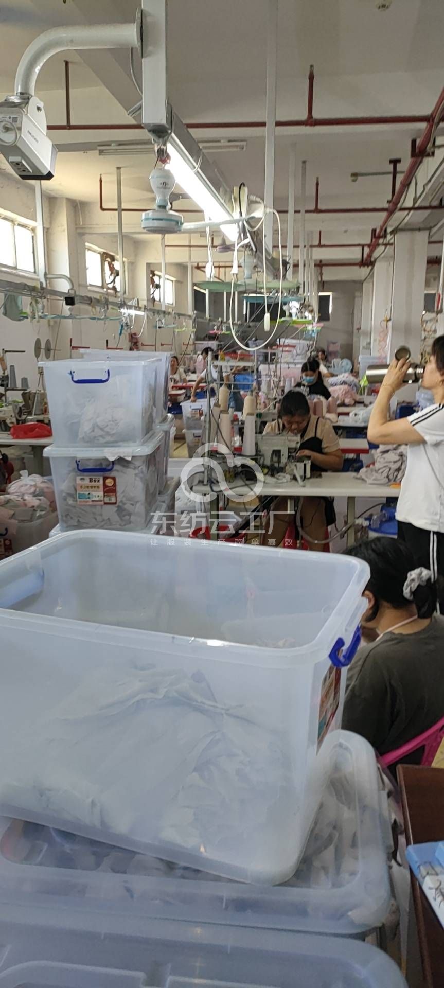 验布机:2台,平车:10台,电烫炉:4台,双针车:40台,烫台:4台,水空调:40台,裁床:2台,五线:100台,四线:60台
