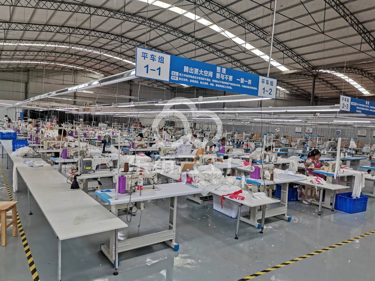 厂房共5000平方,生产车间1700平方,现有机位220个