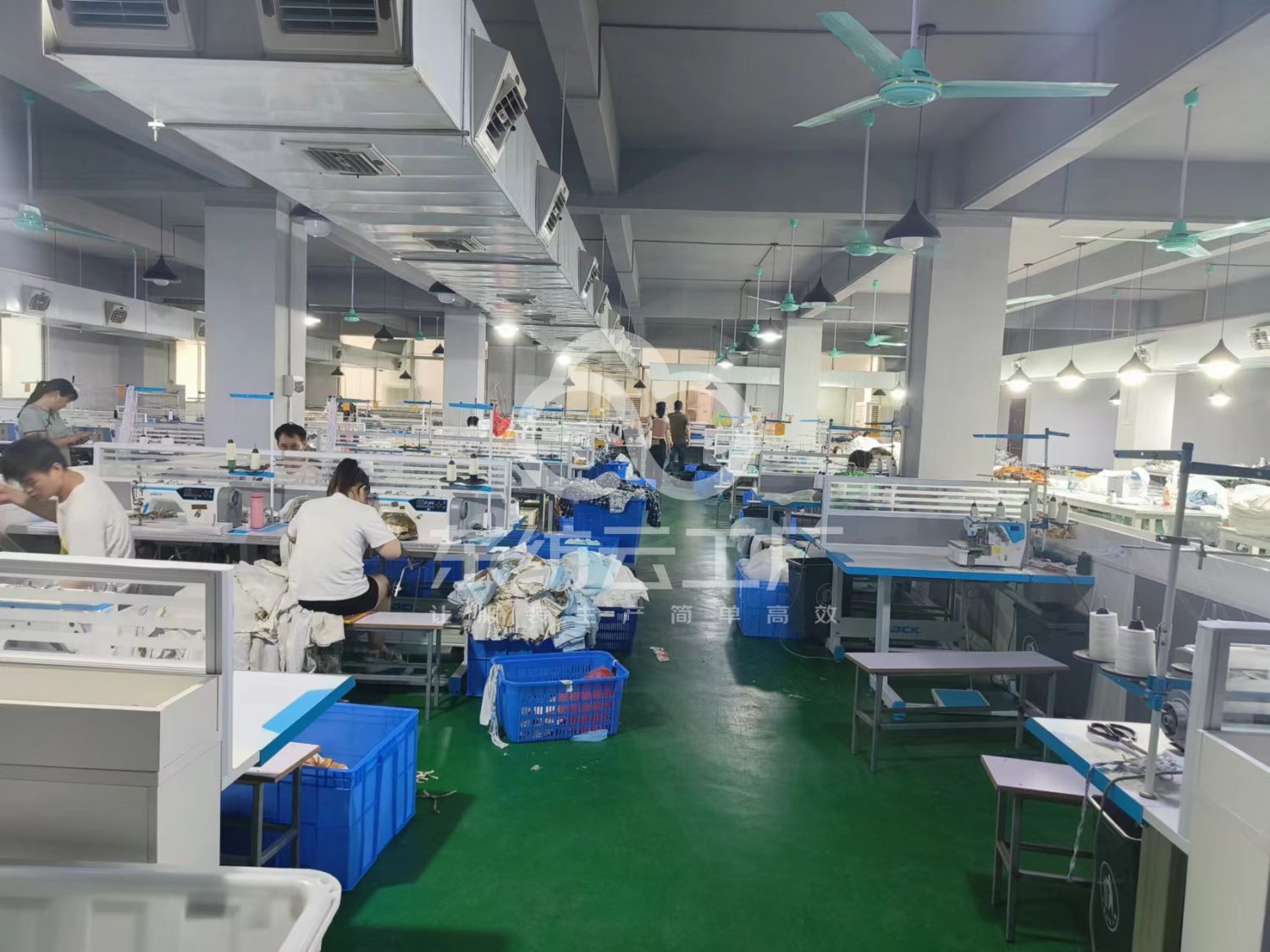 定扣机:4台,挑脚机:1台,剪线机:1台,验布机:1台,断布机:3台,钉扣:3台,自动打扣机:1台,颗粒炉:2台,平眼:1台,平车:20台,电烫炉:1台,针扣机:1台,直眼:1台,电脑凤眼:1台,打边机:6台,双针车:2台,电剪:3台,烫台:5台,冚车:6台,唛架机:1台,锅炉:2台,水空调:2台,裁床:3台,五线:2台,四线:4台