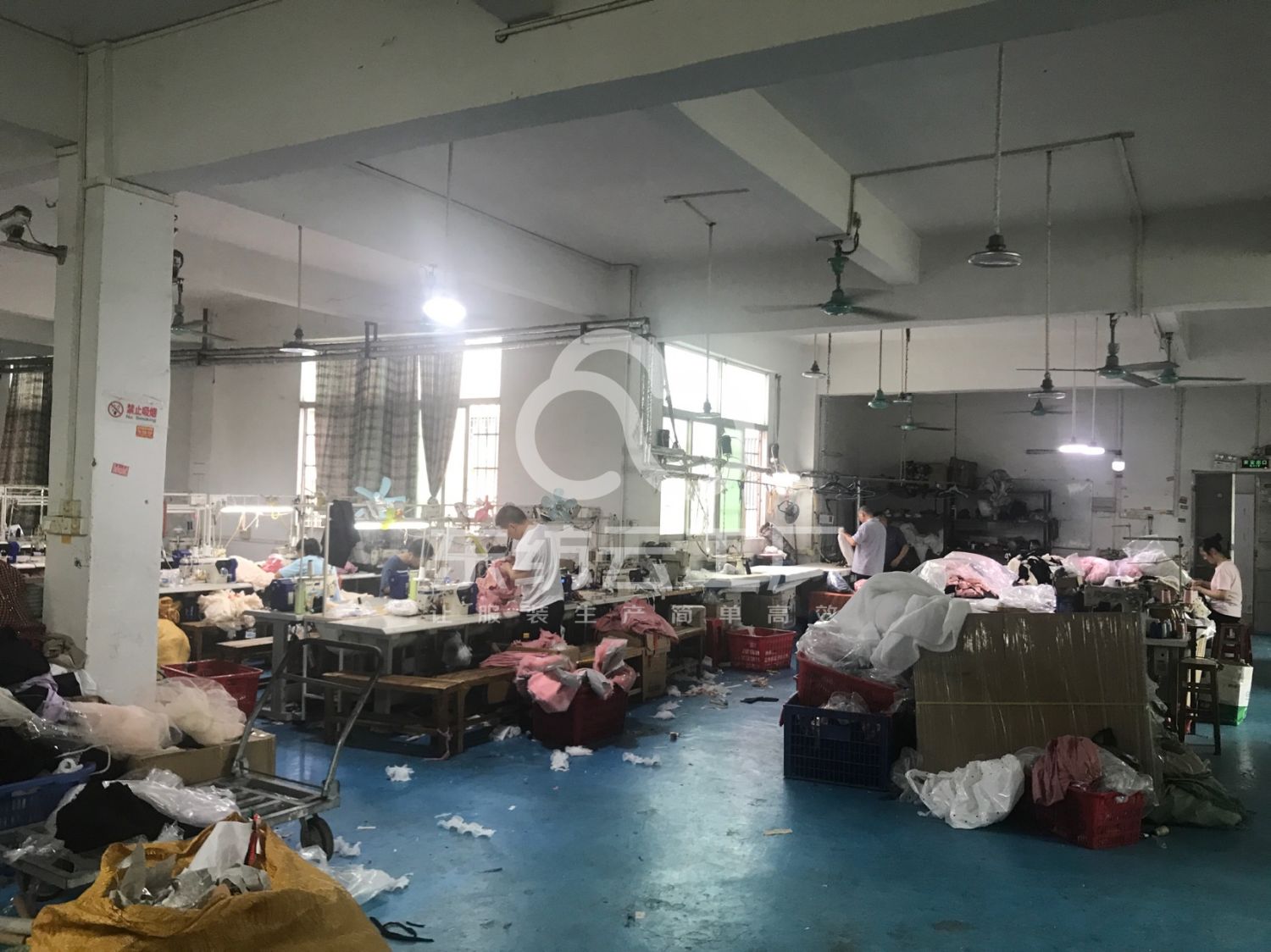 裤头车:3台,颗粒炉:1台,平车:26台,电烫炉:3台,打边机:6台,双针车:5台,电剪:2台,烫台:3台,冚车:6台,唛架机:1台,锅炉:1台,水空调:4台,裁床:1台,五线:2台,四线:2台