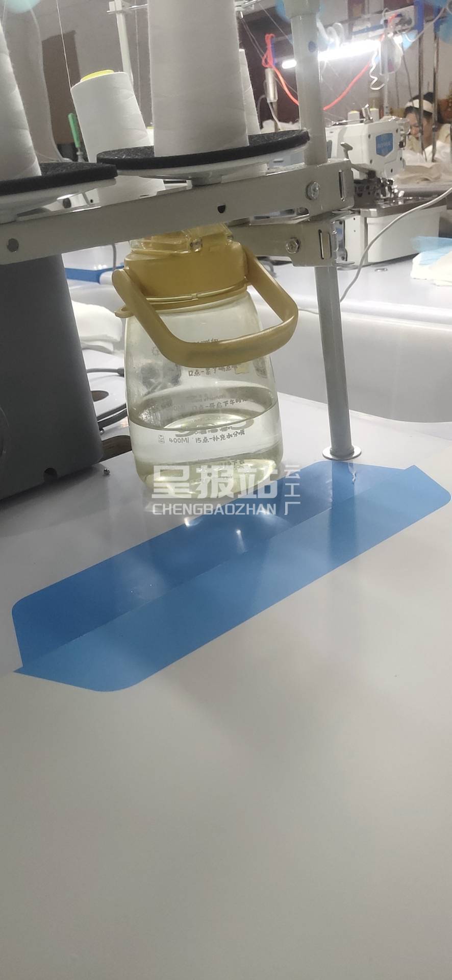 剪线机:1台,断布机:1台,平车:15台,打边机:5台,双针车:1台,烫台:1台,冚车:1台,唛架机:1台,锅炉:1台,水空调:1台,五线:1台