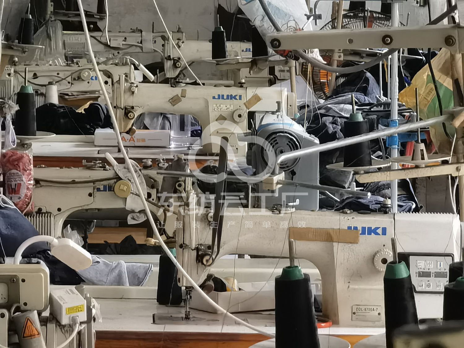 裤头车:3台,松布机:1台,定扣机:1台,挑脚机:1台,剪线机:2台,验布机:1台,钉扣:1台,自动打扣机:1台,吊机:1台,平车:12台,电烫炉:1台,打边机:8台,双针车:1台,电剪:3台,烫台:3台,冚车:5台,唛架机:1台,锅炉:1台,裁床:2台,五线:3台,四线:8台