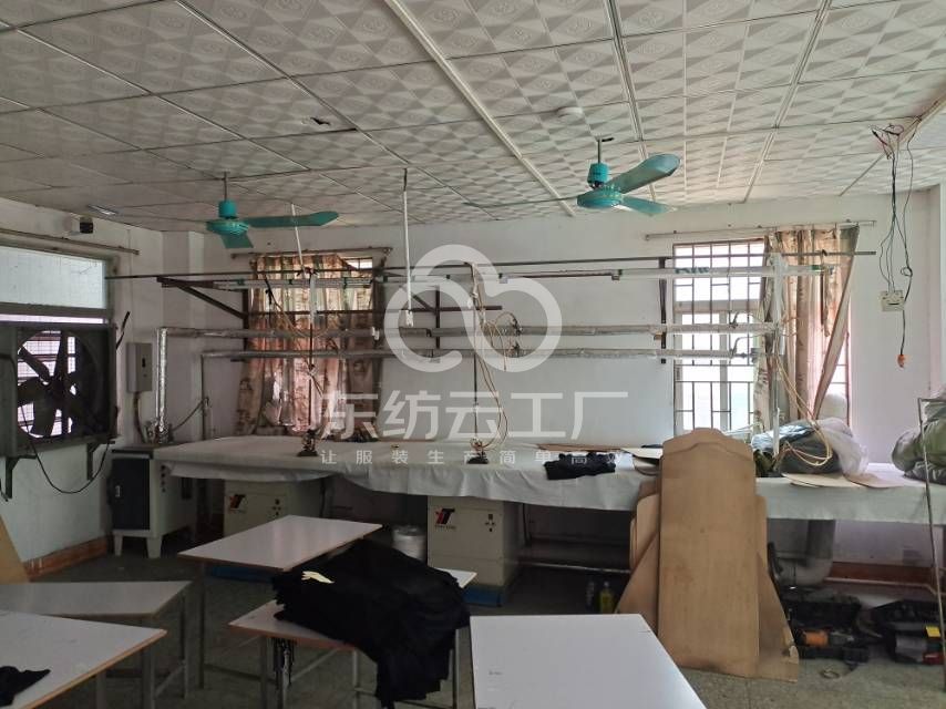 电脑自动裁:2台,吊机:1台,平车:5台,电烫炉:1台,打边机:1台,烫台:5台,唛架机:2台,锅炉:1台,水空调:3台,裁床:1台