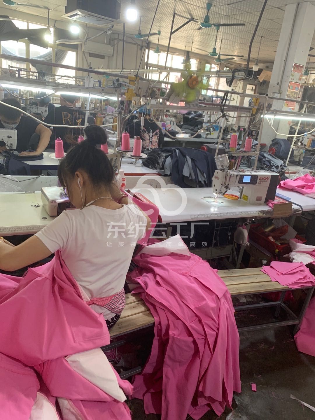 吊机:1台,平车:20台,电烫炉:1台,双针车:2台,电剪:1台,冚车:2台,唛架机:1台,锅炉:1台,裁床:1台,五线:3台,四线:10台