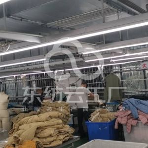定扣机:2台,挑脚机:1台,剪线机:2台,验布机:1台,断布机:3台,钉扣:2台,平眼:2台,平车:150台,电烫炉:3台,直眼:2台,电脑凤眼:1台,打边机:15台,双针车:5台,电剪:5台,烫台:12台,冚车:3台,唛架机:1台,锅炉:3台,水空调:5台,裁床:8台,五线:10台,四线:6台
