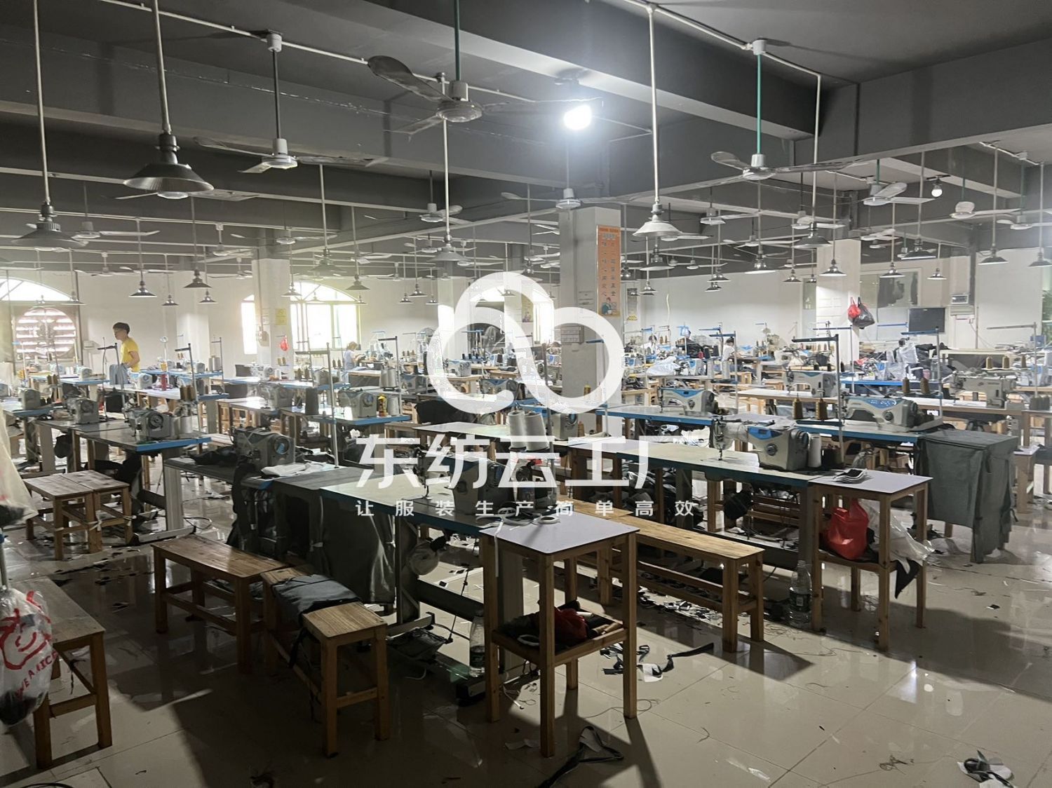 裤头车:2台,自动拉布机:1台,剪线机:4台,钉扣:4台,自动打扣机:4台,平车:40台,电脑凤眼:2台,打边机:4台,双针车:4台,电剪:2台,烫台:4台,唛架机:1台,锅炉:1台,水空调:2台,裁床:1台,五线:4台,四线:4台
