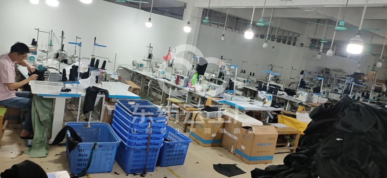 裤头车:1台,剪线机:2台,验布机:1台,断布机:2台,平车:30台,电烫炉:1台,电剪:2台,烫台:3台,冚车:4台,唛架机:1台,锅炉:1台,水空调:2台,裁床:1台,五线:6台,四线:14台