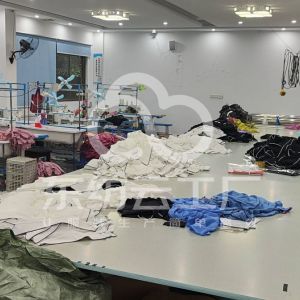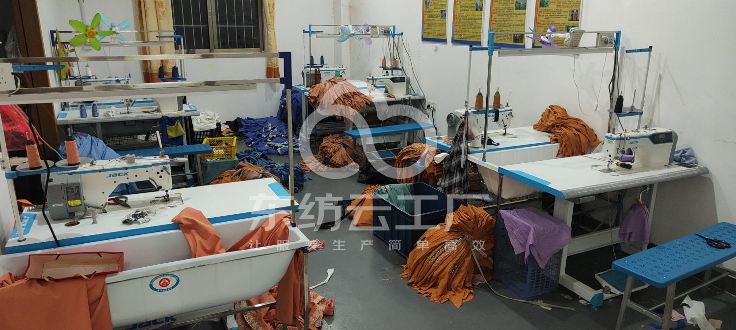 本厂为于佛山三水区西南街道,厂房面积800平,有两个流水生产车间,主要生产衬衣裤子外套等梭织系列产品