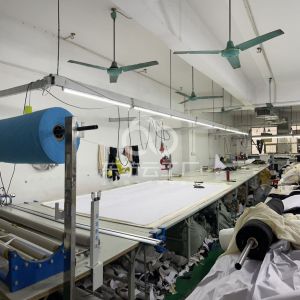 松布机:1台,定扣机:1台,挑脚机:1台,剪线机:1台,验布机:1台,断布机:1台,钉扣:1台,自动打扣机:2台,平眼:1台,平车:50台,电烫炉:7台,针扣机:7台,直眼:1台,电脑凤眼:1台,打边机:10台,双针车:2台,电剪:2台,烫台:7台,冚车:2台,唛架机:1台,锅炉:1台,水空调:4台,裁床:1台,五线:5台,四线:5台