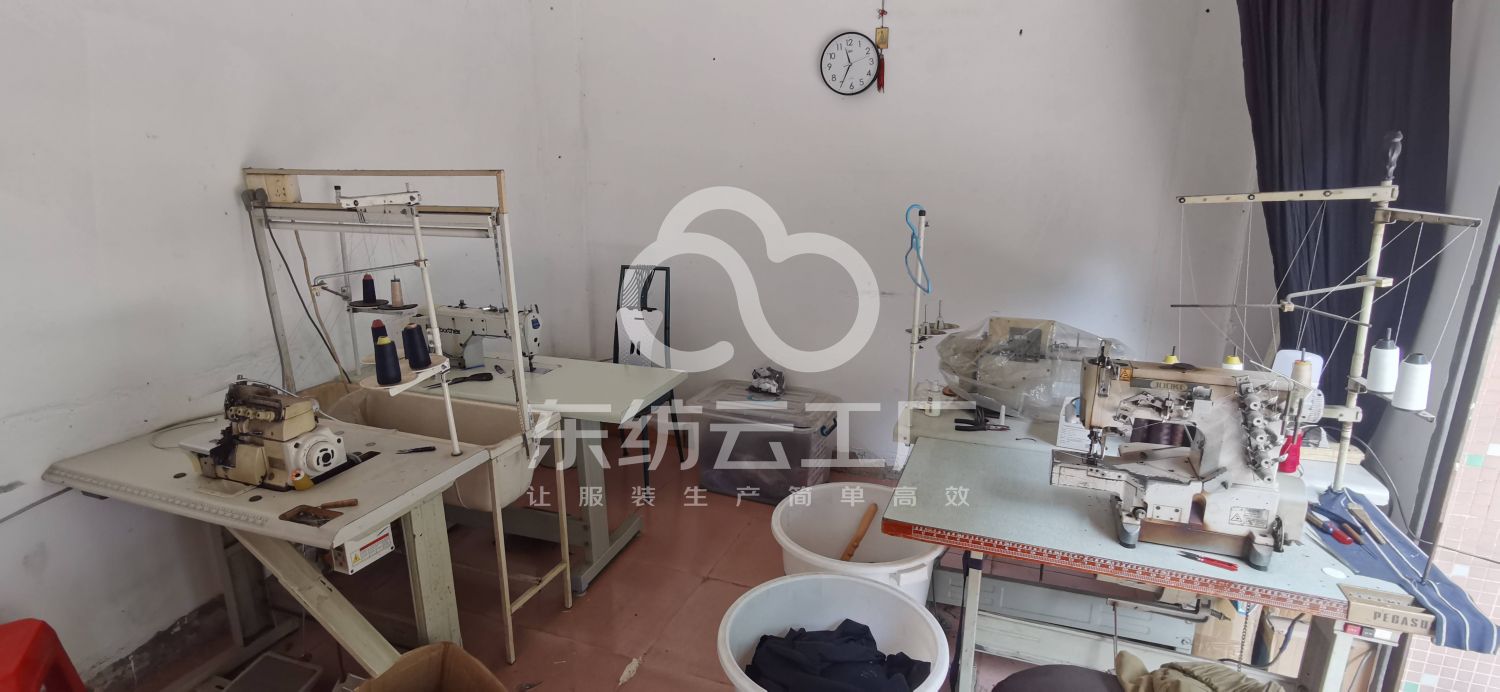 松布机:1台,定扣机:1台,断布机:1台,平眼:1台,平车:5台,电烫炉:1台,打边机:2台,电剪:1台,烫台:1台,冚车:1台,唛架机:1台,锅炉:1台,裁床:1台,四线:2台