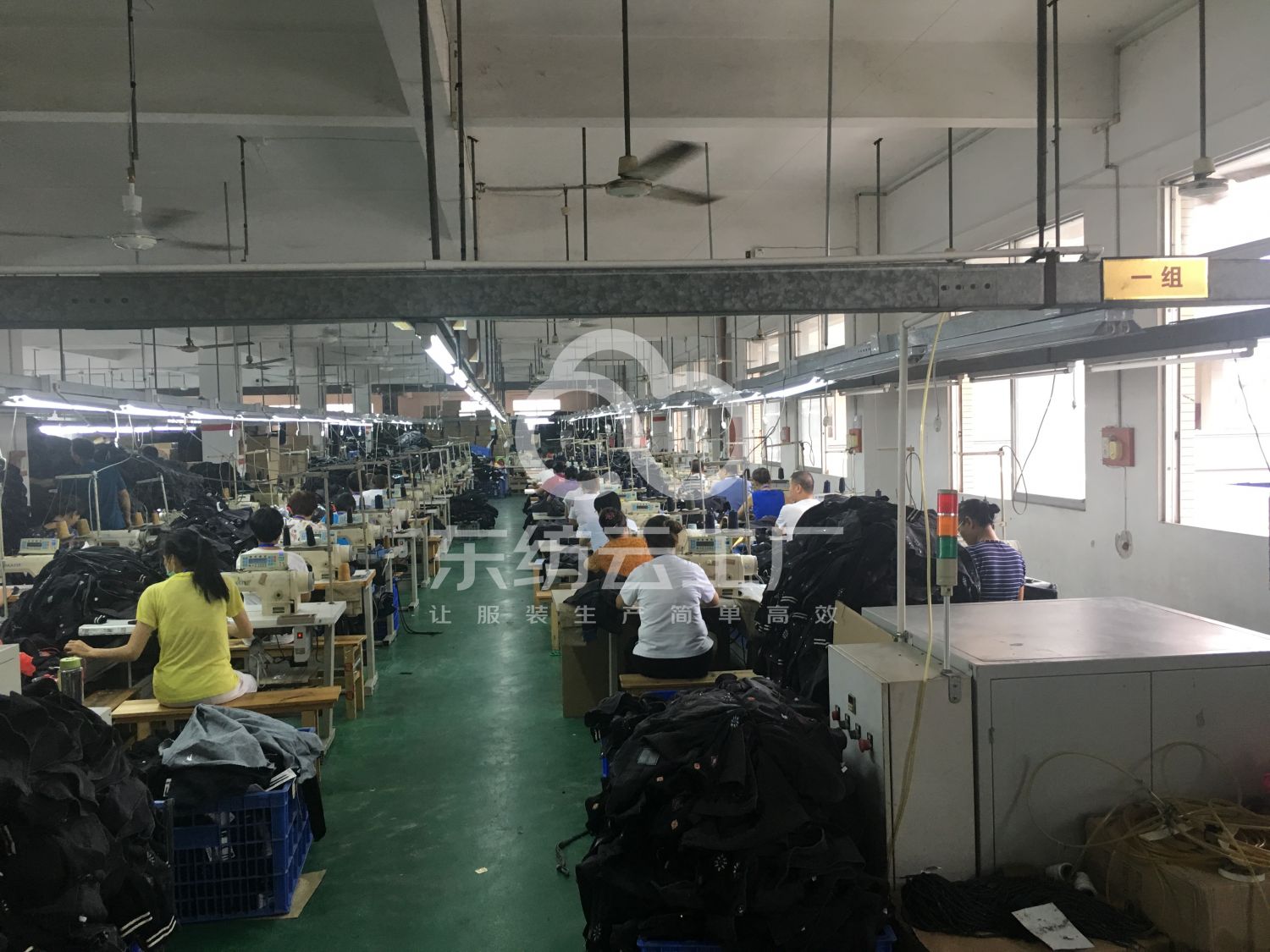 裤头车:4台,自动拉布机:1台,啤机:1台,松布机:1台,定扣机:10台,挑脚机:1台,剪线机:6台,验布机:1台,断布机:2台,钉扣:2台,自动打扣机:2台,平眼:2台,平车:80台,电烫炉:1台,针扣机:2台,直眼:1台,电脑凤眼:1台,打边机:4台,双针车:12台,电剪:6台,烫台:5台,冚车:4台,唛架机:1台,锅炉:2台,裁床:1台,五线:8台,四线:4台