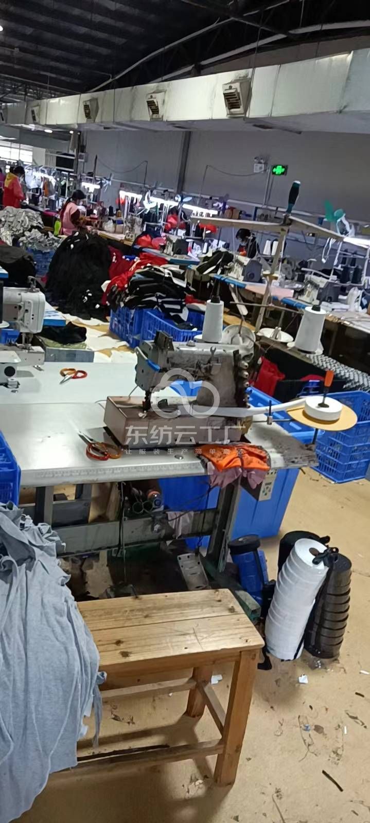 断布机:1台,平车:18台,电烫炉:1台,打边机:6台,双针车:2台,电剪:2台,烫台:2台,冚车:5台,裁床:8台,五线:2台,四线:5台