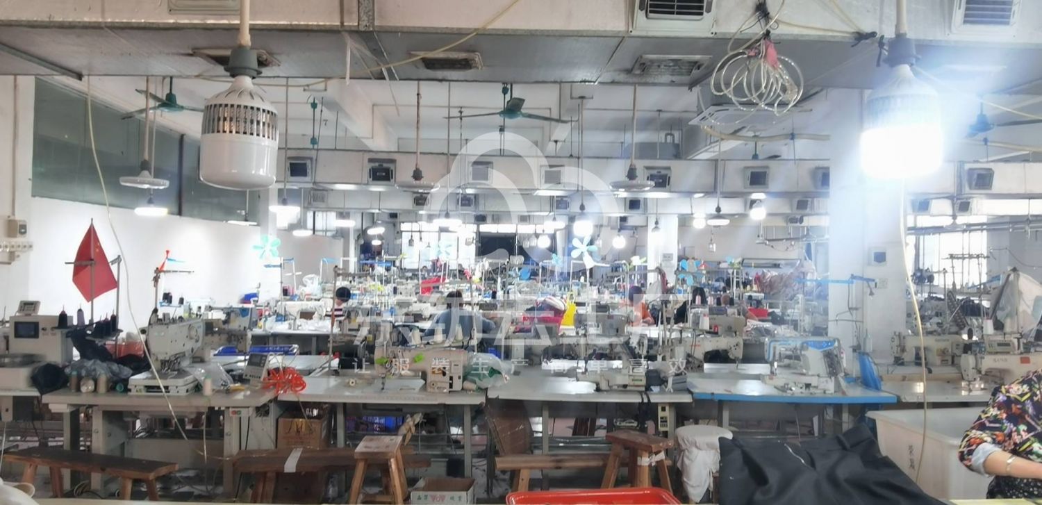 松布机:1台,定扣机:1台,挑脚机:1台,剪线机:1台,验布机:1台,断布机:2台,自动打扣机:1台,颗粒炉:1台,平眼:1台,平车:60台,电烫炉:5台,直眼:1台,电脑凤眼:1台,打边机:12台,双针车:3台,电剪:6台,烫台:5台,冚车:2台,唛架机:1台,裁床:4台,五线:12台,四线:12台