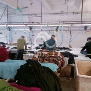 裤头车:2台,啤机:2台,定扣机:2台,剪线机:2台,断布机:2台,平眼:1台,平车:35台,电烫炉:2台,针扣机:1台,直眼:1台,打边机:32台,双针车:2台,电剪:6台,烫台:8台,冚车:16台,唛架机:1台,锅炉:2台,水空调:8台,裁床:2台,五线:3台,四线:35台