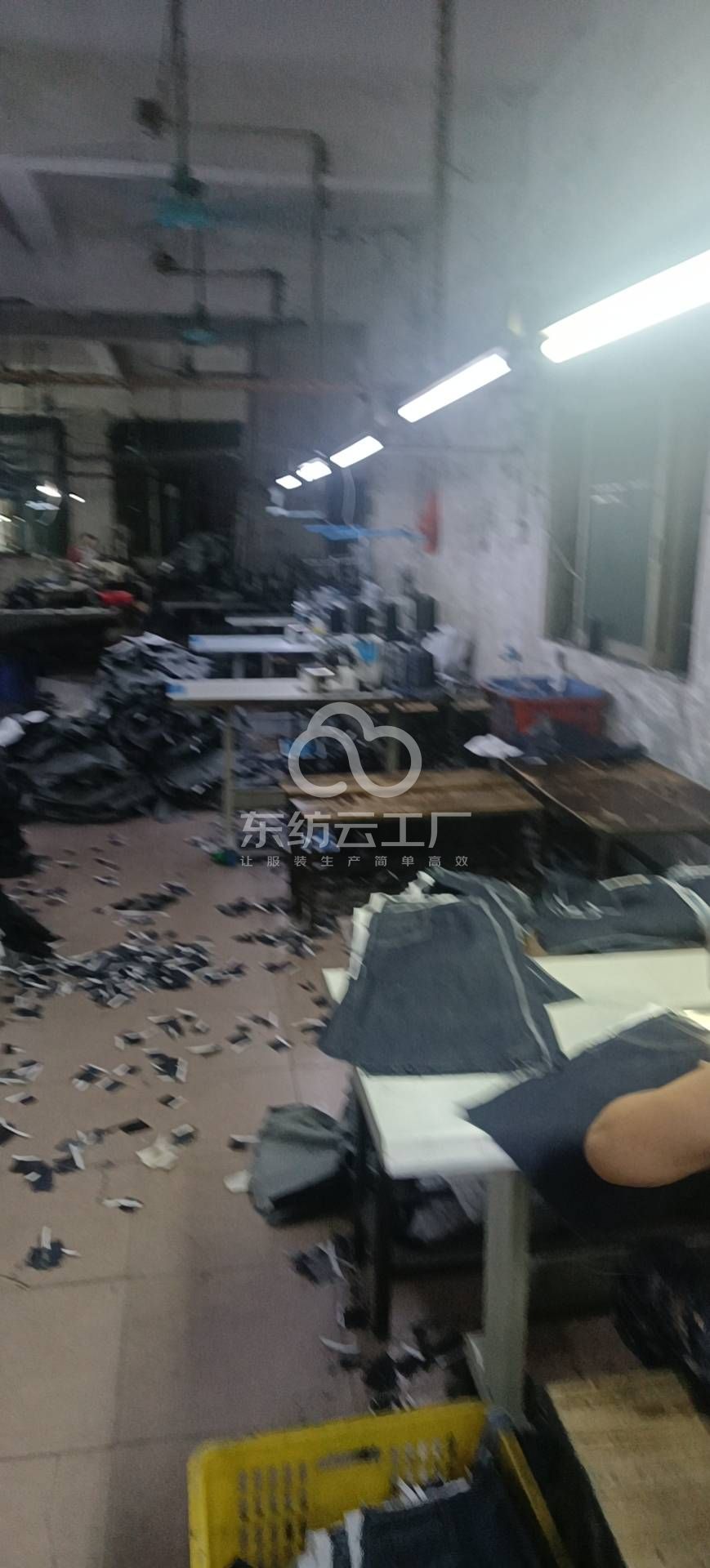 裤头车:2台,定扣机:4台,挑脚机:2台,剪线机:7台,断布机:2台,钉扣:5台,颗粒炉:2台,电脑凤眼:2台,打边机:4台,双针车:10台,电剪:2台,烫台:4台,唛架机:1台,锅炉:2台,五线:6台,四线:3台