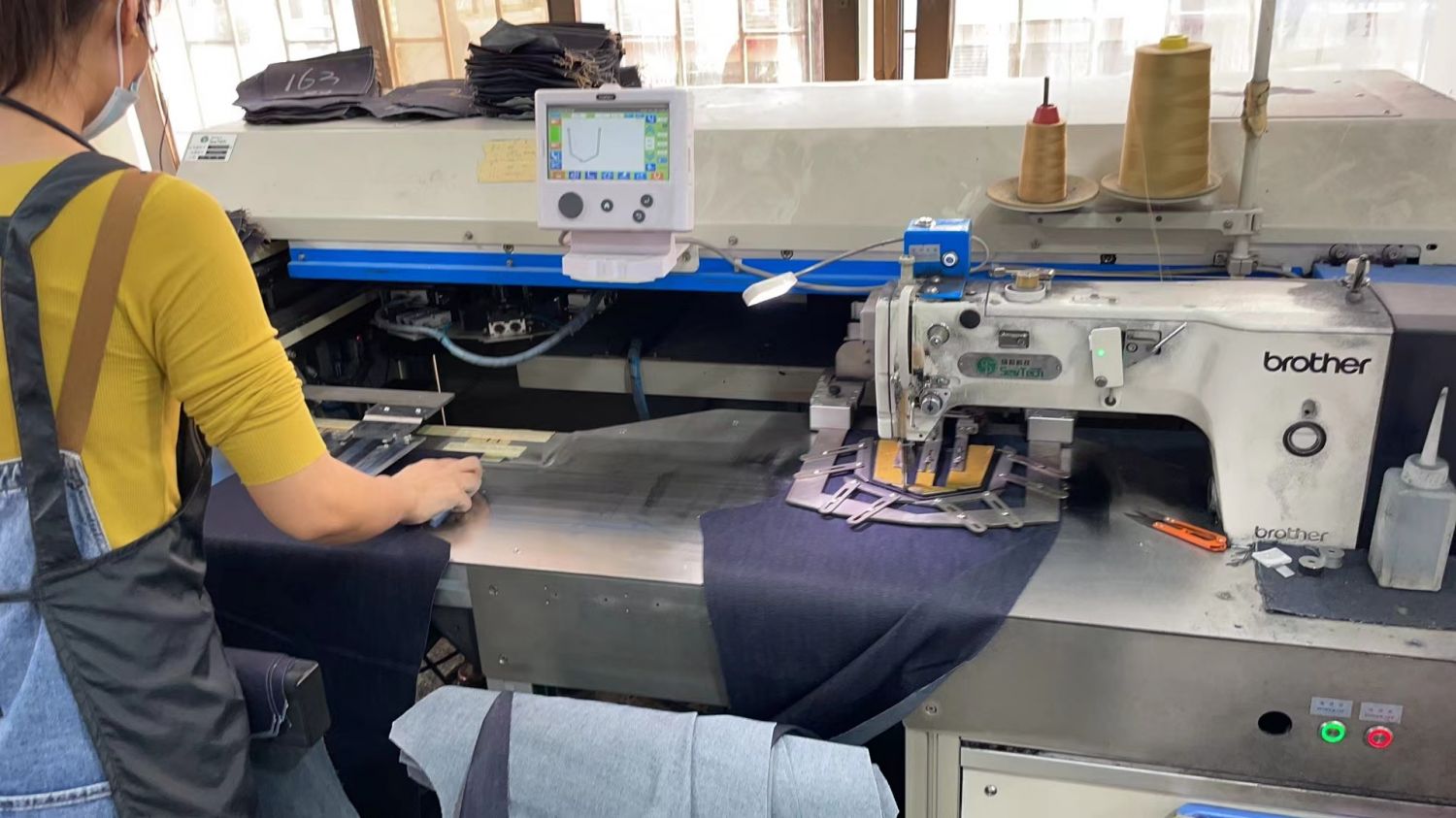 裤头车:3台,智能模板机:2台,剪线机:4台,钉扣:4台,平车:30台,电烫炉:2台,电脑凤眼:1台,双针车:6台,电剪:2台,烫台:4台,唛架机:2台,裁床:1台,五线:6台,四线:5台
