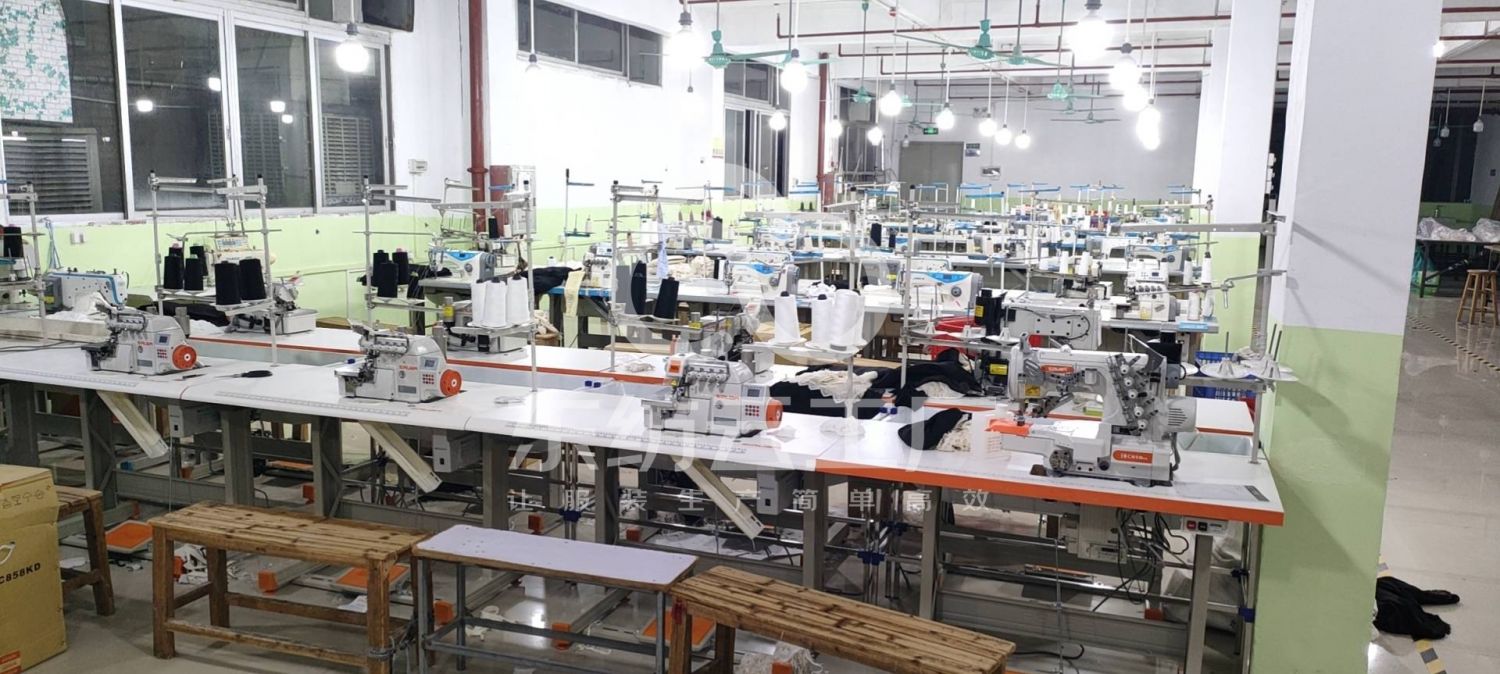 松布机:1台,剪线机:3台,验布机:1台,断布机:2台,钉扣:2台,自动打扣机:2台,颗粒炉:1台,平眼:1台,平车:36台,电烫炉:1台,直眼:1台,打边机:22台,电剪:5台,烫台:4台,冚车:2台,唛架机:1台,锅炉:2台,水空调:3台,裁床:1台,五线:12台,四线:10台