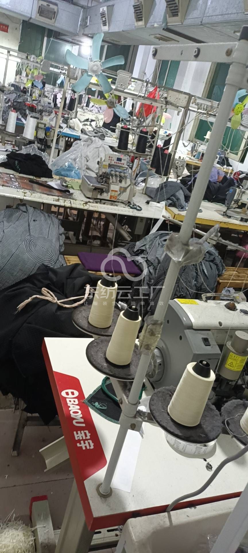 裤头车:0台,智能模板机:0台,自动拉布机:1台,电脑自动裁:0台,啤机:1台,松布机:0台,定扣机:1台,剪线机:1台,断布机:1台,钉扣:1台,吊机:1台,电烫炉:2台,直眼:1台,电剪:2台,冚车:1台