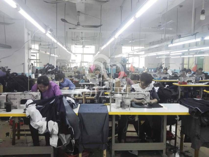 裤头车:2台,剪线机:4台,钉扣:4台,平眼:1台,平车:40台,电烫炉:3台,电脑凤眼:2台,打边机:6台,双针车:6台,电剪:3台,烫台:3台,唛架机:1台,裁床:1台,五线:6台,四线:4台