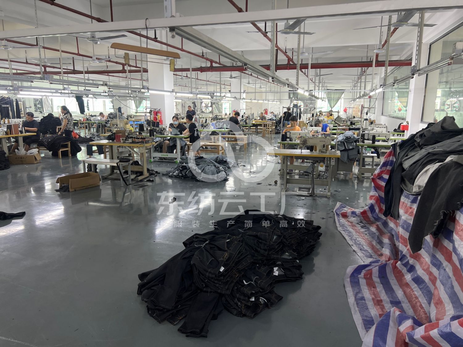 裤头车:3台,自动拉布机:1台,啤机:2台,定扣机:3台,剪线机:5台,断布机:1台,自动打扣机:1台,平眼:1台,平车:10台