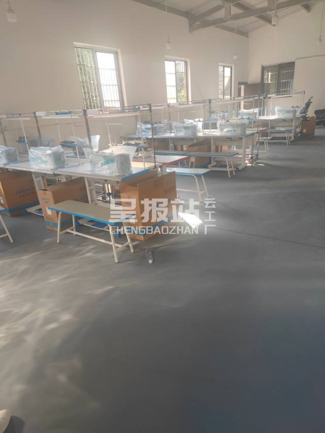 断布机:1台,吊机:1台,平车:20台,电烫炉:1台,打边机:10台,烫台:2台,冚车:4台,唛架机:1台,水空调:2台,裁床:1台,四线:10台