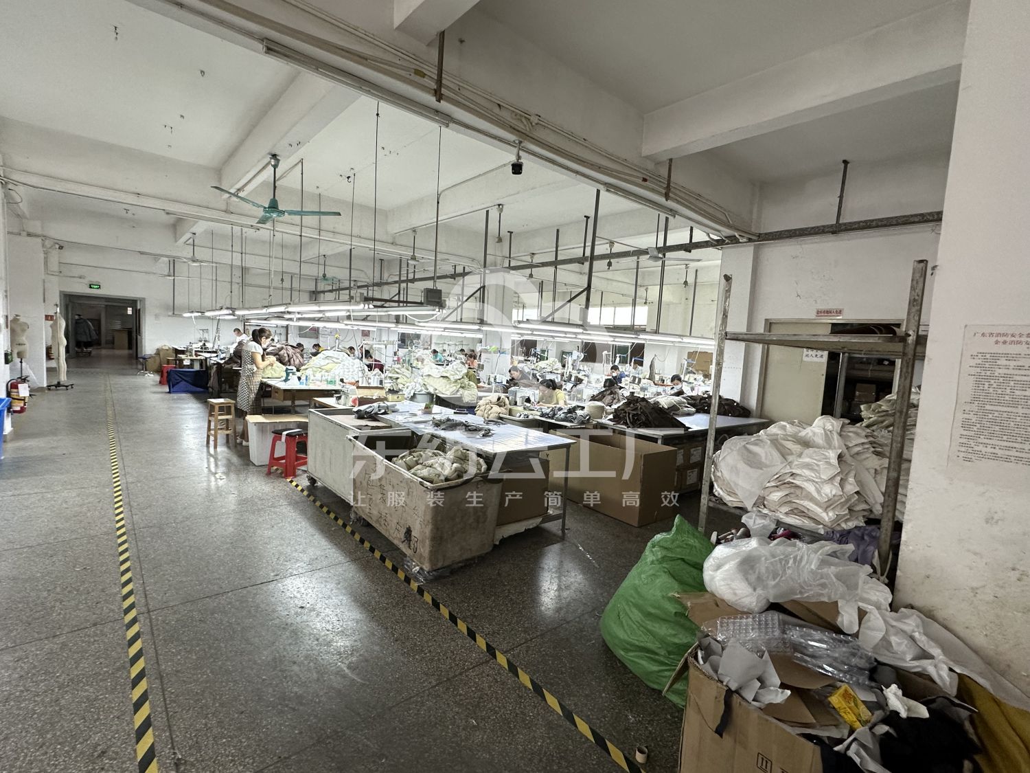 裤头车:2台,智能模板机:1台,自动拉布机:2台,松布机:1台,定扣机:3台,挑脚机:2台,剪线机:4台,验布机:1台,断布机:1台,钉扣:1台,颗粒炉:2台,平眼:2台,平车:150台,电烫炉:6台,针扣机:1台,直眼:1台,电脑凤眼:1台,打边机:6台,双针车:2台,电剪:3台,烫台:6台,冚车:2台,唛架机:2台,锅炉:2台,水空调:8台,裁床:4台,五线:4台,四线:4台