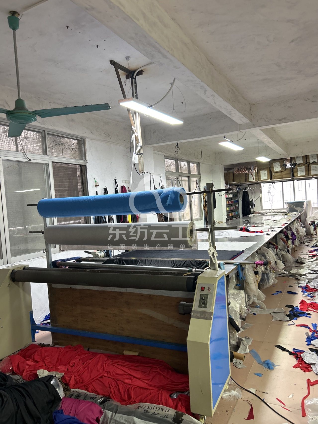 吊机:1台,平车:18台,打边机:4台,电剪:4台,烫台:3台,唛架机:1台,裁床:1台,五线:4台,四线:4台