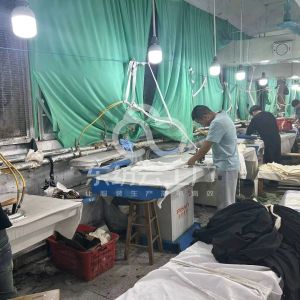 智能模板机:3台,松布机:2台,定扣机:3台,剪线机:2台,断布机:2台,自动打扣机:5台,平眼:2台,平车:80台,针扣机:5台,直眼:2台,电脑凤眼:1台,打边机:45台,双针车:5台,电剪:8台,烫台:10台,冚车:3台