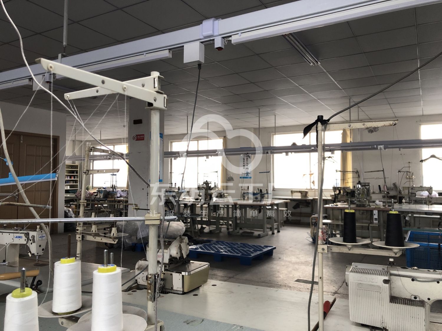剪线机:1台,断布机:1台,钉扣:1台,平眼:1台,平车:20台,双针车:6台,烫台:2台,裁床:1台,五线:3台,四线:10台