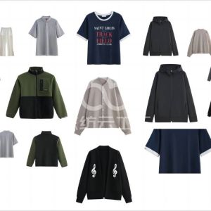 女装:T恤,背心、吊带,短裤,卫衣,POLO衫;男装:T恤,卫衣,POLO衫;童装:POLO衫,T恤;
