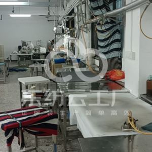 松布机:1台,定扣机:1台,剪线机:3台,验布机:1台,断布机:3台,钉扣:3台,自动打扣机:2台,平眼:2台,平车:38台,电烫炉:3台,针扣机:1台,打边机:18台,双针车:2台,电剪:4台,烫台:8台,冚车:4台,唛架机:1台,锅炉:3台,水空调:3台,裁床:2台,五线:1台,四线:18台
