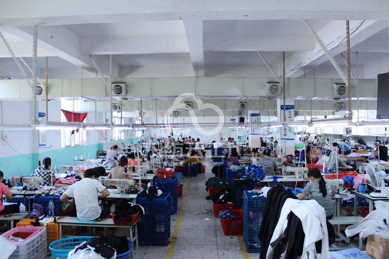 裤头车:1台,验布机:1台,平车:40台,双针车:3台,烫台:3台,五线:11台,四线:11台