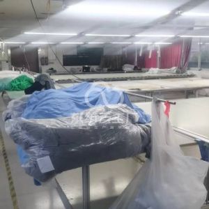 智能模板机:1台,自动拉布机:1台,定扣机:2台,挑脚机:1台,验布机:1台,断布机:5台,钉扣:2台,颗粒炉:1台,平眼:2台,平车:80台,双针车:12台,电剪:5台,烫台:8台,唛架机:1台,水空调:1台,裁床:8台,五线:2台,四线:40台