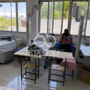 验布机:1台,断布机:2台,钉扣:2台,平眼:1台,平车:12台,电烫炉:1台,直眼:1台,双针车:8台,电剪:2台,烫台:3台,冚车:1台,裁床:2台,五线:3台,四线:13台