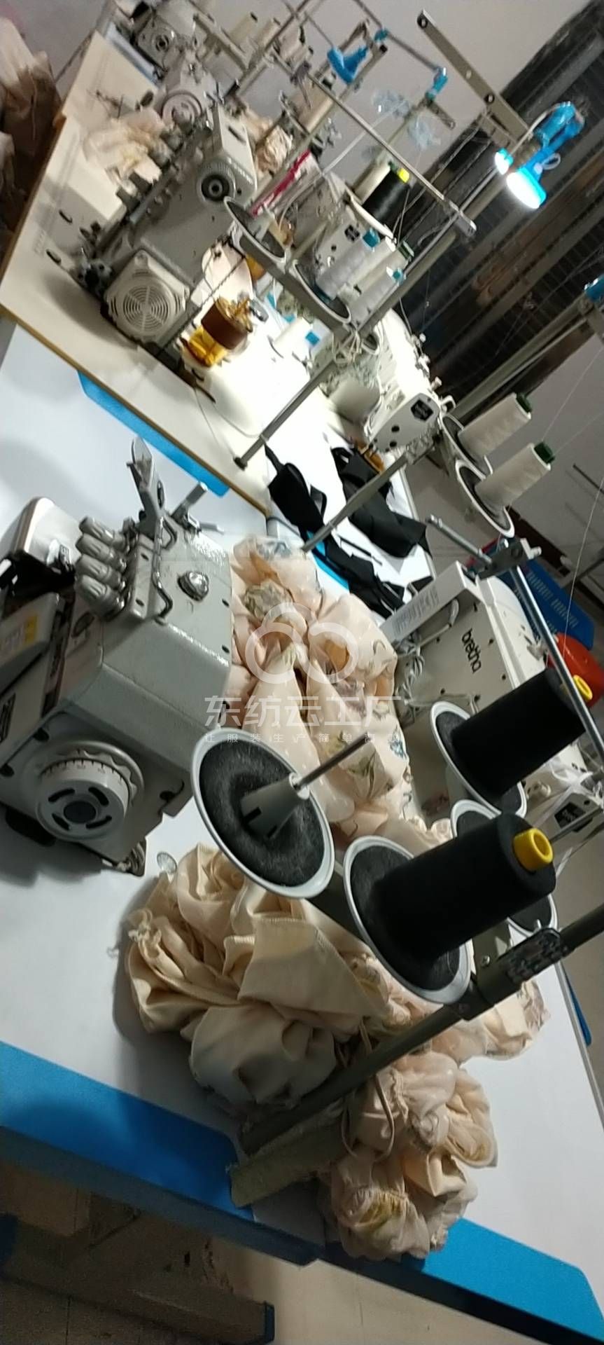 松布机:1台,定扣机:1台,断布机:1台,钉扣:1台,自动打扣机:1台,平车:4台,电烫炉:1台,电剪:1台,烫台:1台,冚车:1台,唛架机:1台,水空调:1台,裁床:1台,五线:1台,四线:2台