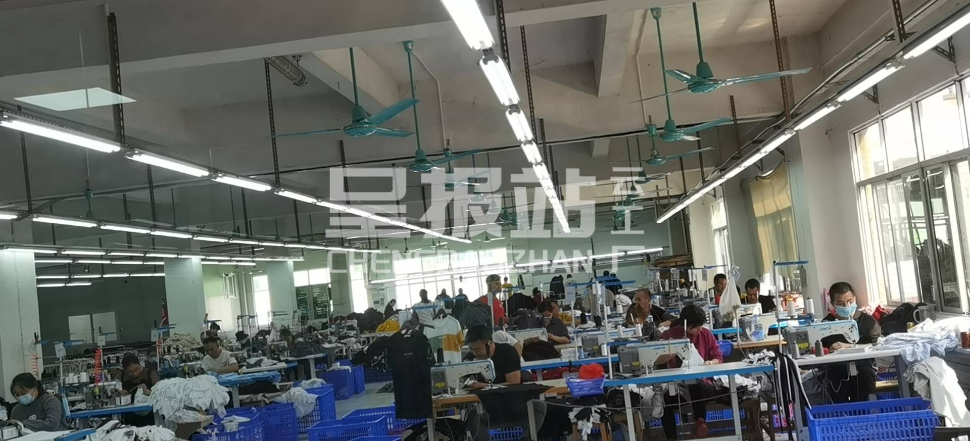 裤头车:5台,智能模板机:6台,松布机:3台,定扣机:3台,剪线机:10台,验布机:2台,自动打扣机:3台,颗粒炉:3台,吊机:1台,平车:30台,打边机:50台,电剪:20台,冚车:20台,唛架机:3台,锅炉:3台,水空调:10台,裁床:5台