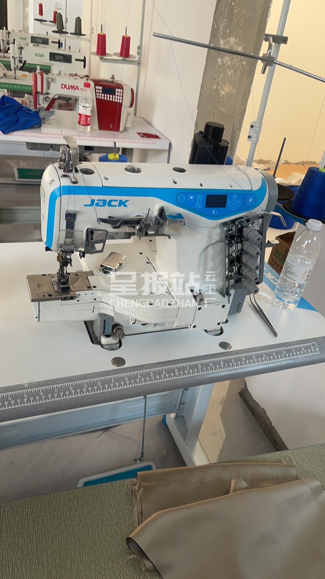 平车:8台,电烫炉:1台,打边机:2台,双针车:2台,烫台:1台,锅炉:1台,水空调:1台,五线:2台,四线:2台