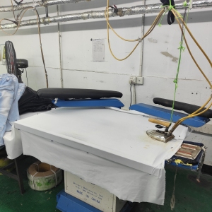 裤头车:2台,自动拉布机:1台,松布机:1台,定扣机:3台,验布机:1台,钉扣:2台,平眼:1台,平车:20台,电烫炉:4台,针扣机:1台,直眼:1台,电脑凤眼:1台,打边机:6台,双针车:6台,电剪:6台,烫台:4台,唛架机:1台,锅炉:1台,水空调:6台,裁床:2台,五线:3台,四线:22台