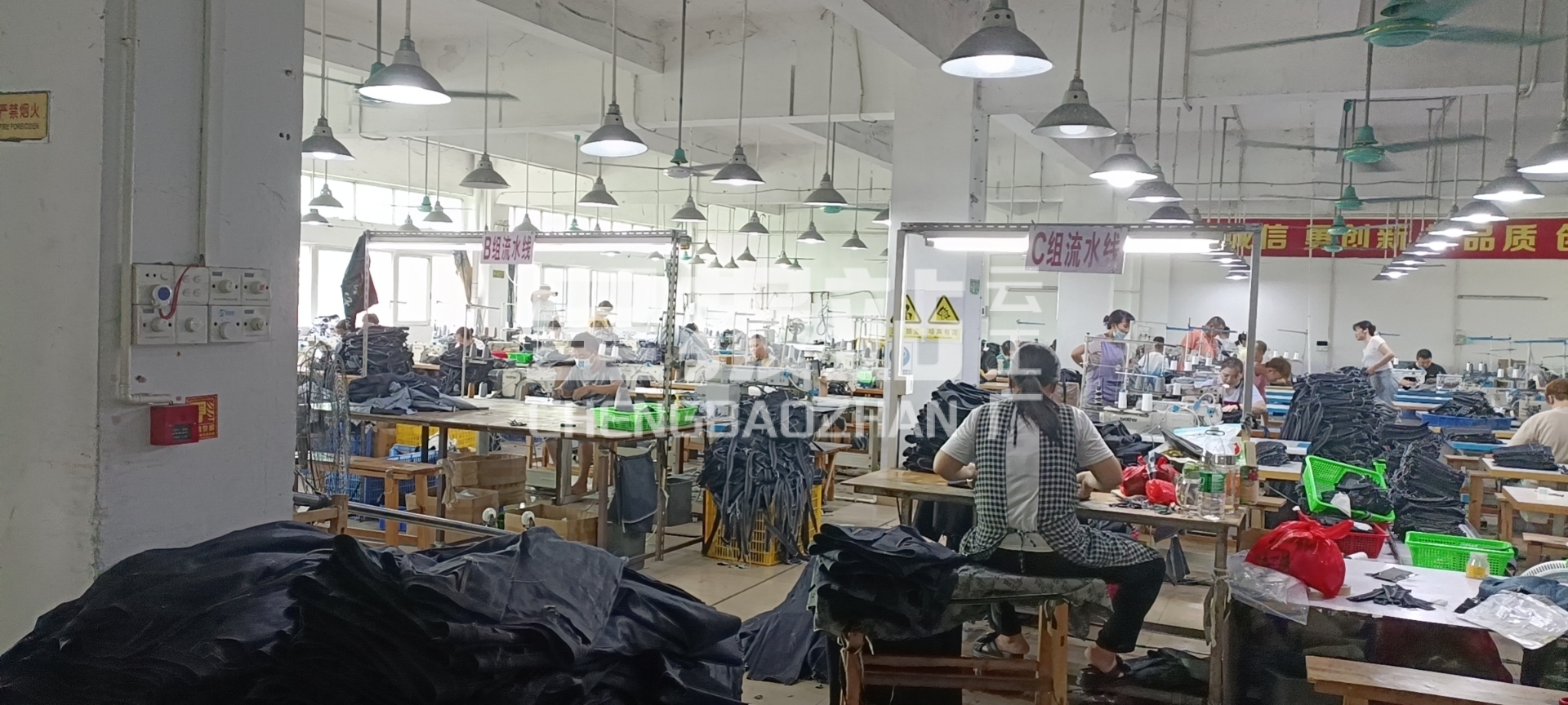 我们有洗⽔⻋间以及后整⻋间,层层把关每⼀件产品都达到标准优质
