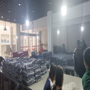 裤头车:2台,啤机:2台,松布机:1台,定扣机:3台,挑脚机:3台,剪线机:2台,验布机:1台,断布机:1台,钉扣:2台,平眼:2台,平车:68台,电烫炉:5台,针扣机:1台,直眼:1台,电脑凤眼:1台,打边机:10台,双针车:2台,电剪:4台,烫台:5台,冚车:1台,唛架机:1台,锅炉:2台,水空调:3台,裁床:2台,五线:3台,四线:8台