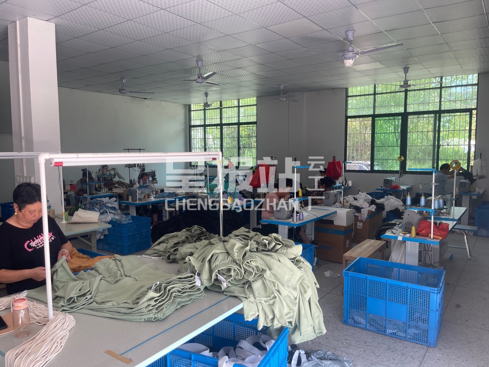 裤头车:1台,平车:12台,电烫炉:1台,双针车:1台,五线:3台,四线:1台