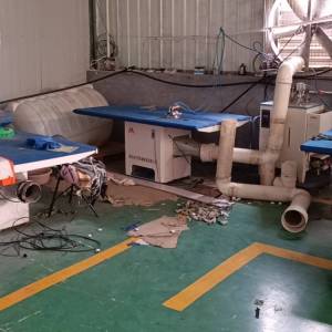 自动拉布机:1台,定扣机:2台,剪线机:2台,钉扣:2台,自动打扣机:2台,平眼:1台,平车:25台,针扣机:2台,双针车:2台,电剪:2台,烫台:4台,唛架机:1台,锅炉:1台,水空调:4台,裁床:1台,五线:2台,四线:5台