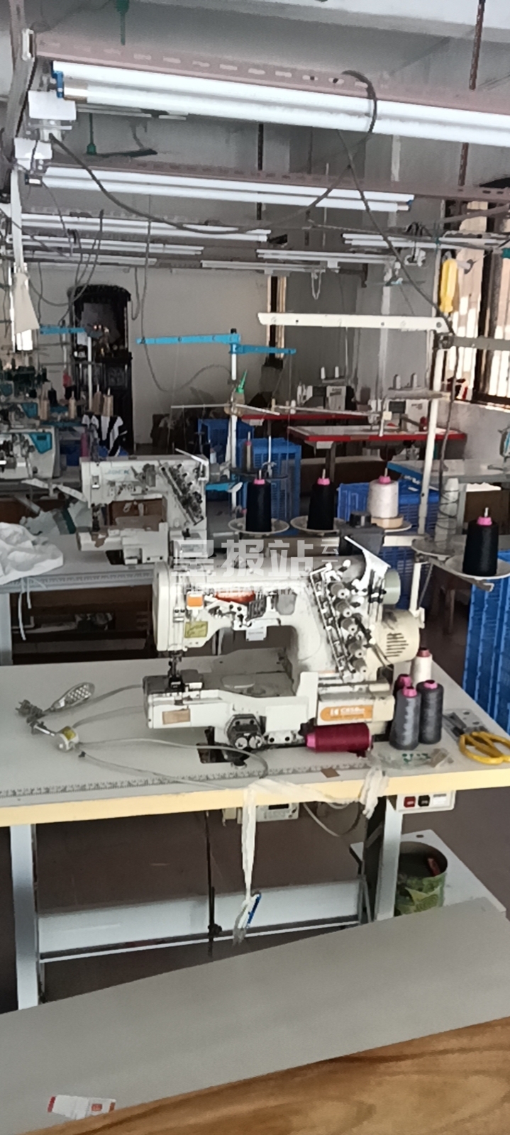 裤头车:1台,平车:8台,电烫炉:1台,打边机:5台,电剪:2台,烫台:1台,冚车:2台,唛架机:1台,裁床:1台