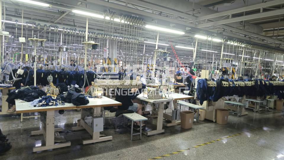 裤头车:10台,智能模板机:5台,自动拉布机:5台,电脑自动裁:5台,松布机:2台,定扣机:3台,挑脚机:3台,剪线机:6台,验布机:1台,断布机:5台,钉扣:2台,自动打扣机:2台,平眼:2台,吊机:16台,平车:300台,电烫炉:10台,针扣机:5台,直眼:5台,电脑凤眼:5台,打边机:100台,双针车:6台,电剪:8台,烫台:10台,冚车:10台,唛架机:1台,锅炉:10台,裁床:5台,五线:10台,四线:40台