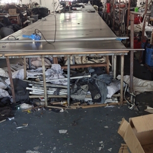裤头车:2台,定扣机:2台,剪线机:3台,钉扣:2台,颗粒炉:2台,平眼:1台,平车:35台,电烫炉:3台,直眼:1台,电脑凤眼:1台,打边机:8台,双针车:6台,电剪:2台,烫台:3台,唛架机:1台,裁床:2台,五线:6台,四线:5台