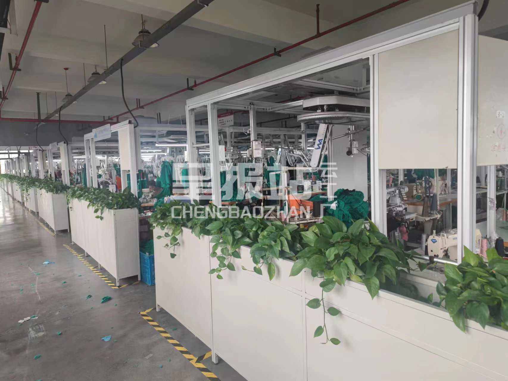 裤头车:1台,智能模板机:3台,自动拉布机:1台,电脑自动裁:1台,松布机:0台,定扣机:5台,挑脚机:1台,剪线机:5台,验布机:2台,钉扣:5台,自动打扣机:2台,平眼:2台,平车:300台,电烫炉:5台,针扣机:2台,直眼:2台,电脑凤眼:2台,打边机:50台,双针车:20台,电剪:2台,烫台:10台,冚车:10台,唛架机:2台,锅炉:1台,水空调:20台,裁床:3台,五线:50台,四线:50台